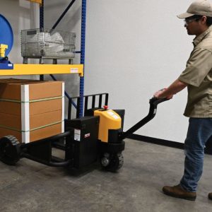 Xe điều khiển bằng tay cầm, nâng/hạ qua thủy lực chạy điện, có nút dừng khẩn và điều chỉnh tốc độ để làm việc an toàn; làm theo hướng dẫn vận hành xe nâng tay điện an toàn.